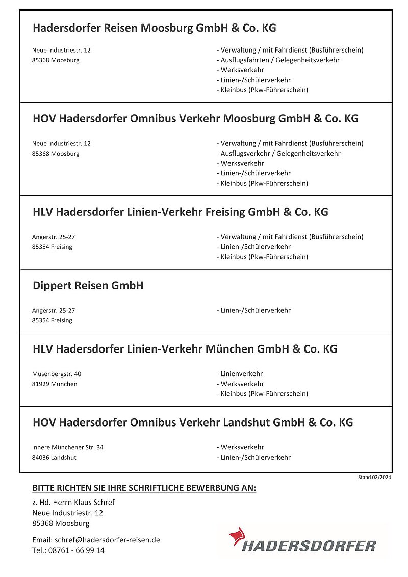 - Fahrdienst im Stadt-, Linien-, Schul- und Werksverkehr in unseren Busbetrieben in Moosburg/ Freising/ München